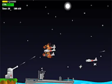 En este juego controlarás un cañón de tierra y tu objetivo es defender la flota de los bombardeos. Para proteger la flota, tienes que apuntar y derribar todos los aviones enemigos que se aproximan. El enemigo envía más y más oleadas de ataques aéreos constantemente. ¿Podrás sobrevivir al bombardeo y proteger todas las unidades terrestres? Juega a este juego flash gratuito para averiguarlo.