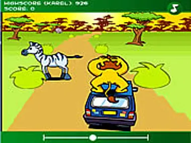 The lion is on the roof of the vehicle. Help him to maintain the balance on the roof of the car.