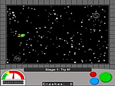 Eres el piloto de la nave espacial que cayó en el Agujero Negro. Necesitas completar 20 etapas para alcanzar la Hípervelocidad y escapar. Las teclas de flecha controlan los motores de la nave. Tienes que considerar la inercia de tu nave y la influencia de diferentes obstáculos en las etapas.