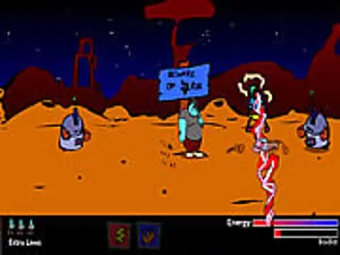You are Tor, a large, gentle natured Martian living in space and solitude in the Martian wilderness. Unfortunately, video games don't often go on like that for long. Earthlings have finally visited your planet and are bringing with them their litter, rap rock, religions and fast food restaurant franchises. You grab your state of the art SmashMaster 4000 and set out to shut down their invasion at the source.