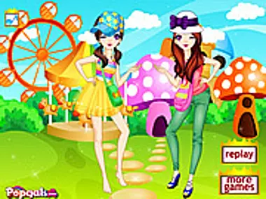 The twin sisters are spending a pleasure afternoon together in a park!Please use the beautiful clothes to dress them up and take a photo of them!