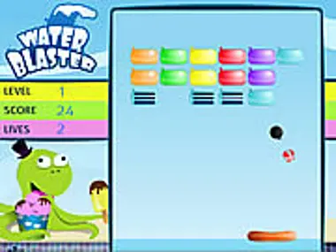 Water blaster es un clásico juego de breakout que trae 27 emocionantes niveles con geniales efectos de color de agua y bonificaciones que hacen el juego interesante. Mueve la paleta de goma para golpear la pelota y revienta tantos globos de agua como puedas.