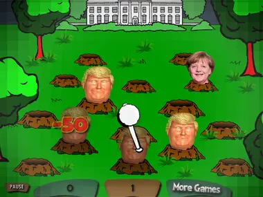 Si golpeas a Merkel, perderás algunos puntos y será difícil superar el nivel. 10 niveles de diversión en este juego.