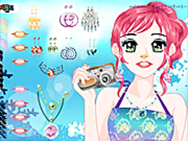 Prepare this cute photographer girl for her photo shoot by choosing clothes and accessories.